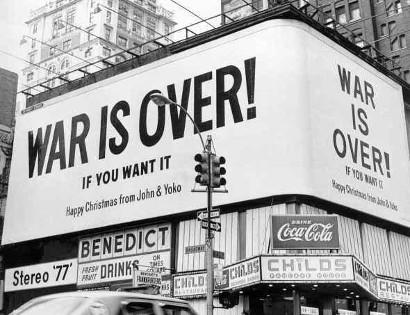 “WAR IS OVER! IF YOU WANT IT. Happy Christmas from John & Yoko.”